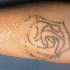 진피층에 착색된 색상의 종류와 깊이에따라 제거시술 회수가 달라질수있다. 큐 스위치 앤디 야그 고출력 레이저는 대부분 흉터없이 제거가 가능하다. |